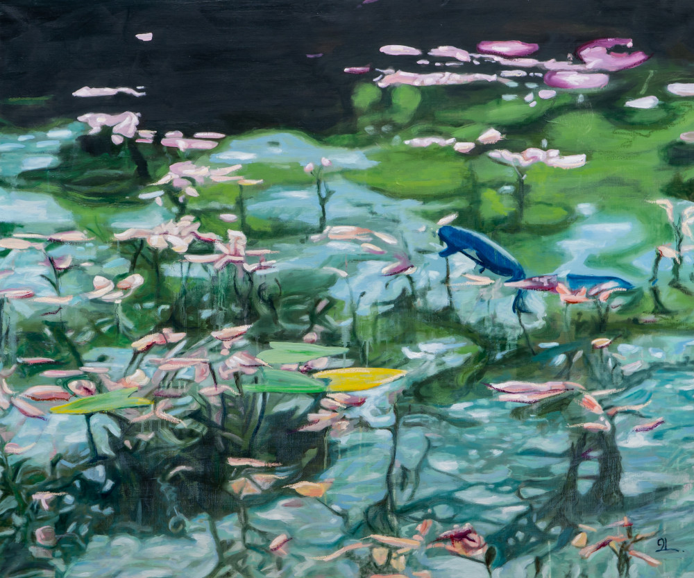 La dolce anima est une invitation à ralentir, ressentir, s’abandonner à la douceur du vivant. Un moment suspendu, où tout semble flotter entre deux silences, où la lumière traverse et enveloppe le spectateur. Des tiges émergent, fragiles, presque calligraphiques et nous rappellent notre propre verticalité. Des nénuphars flottants, comme emportés par un courant lent ou une mémoire qui se dissout, dégagent une profonde sensation de plénitude.