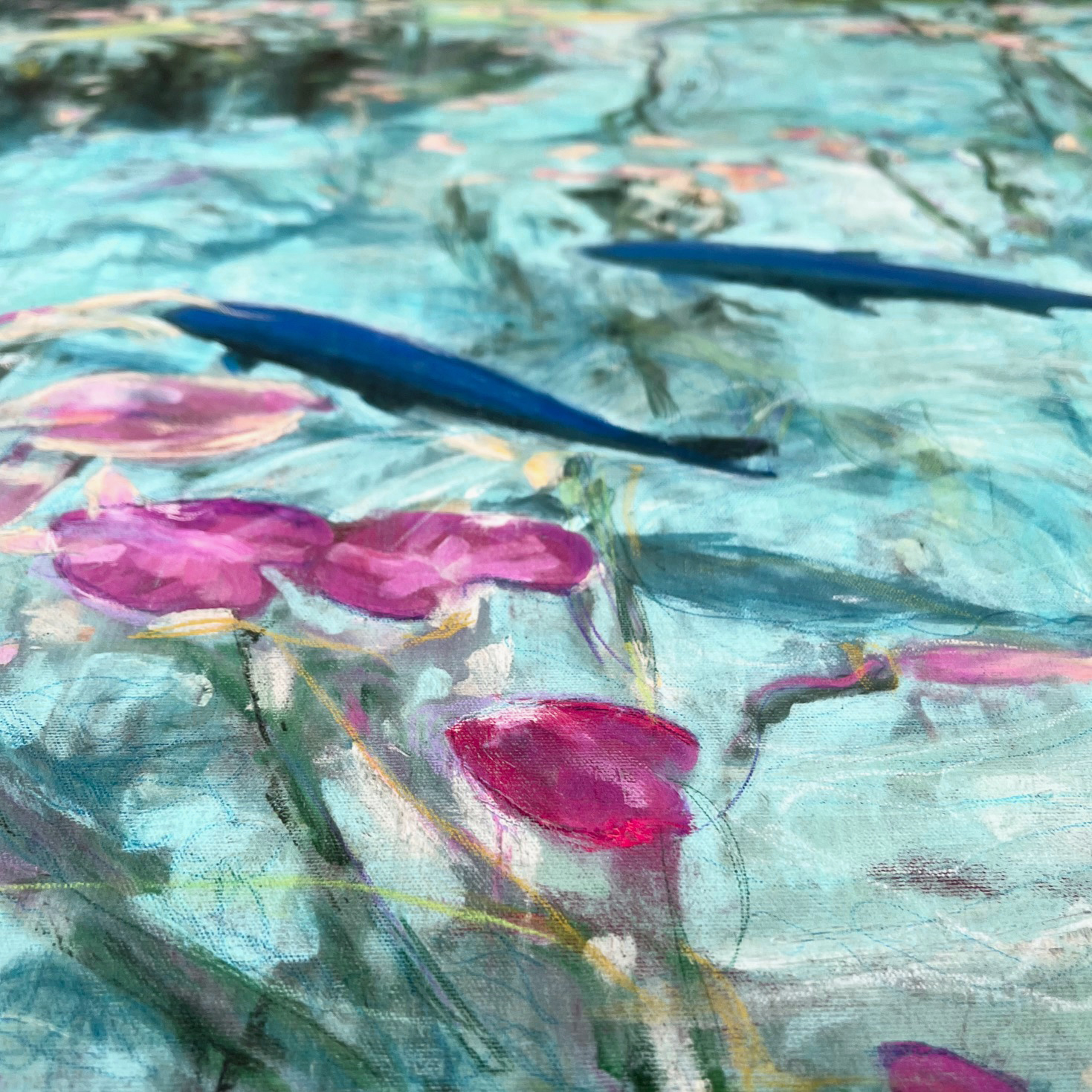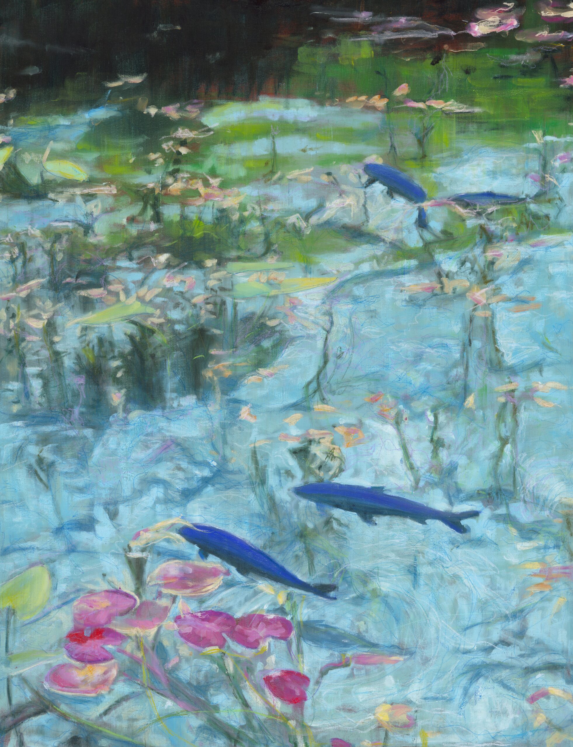 La sérénité d’un lac aux eaux transparentes, où tout est vibrance et ondulations.